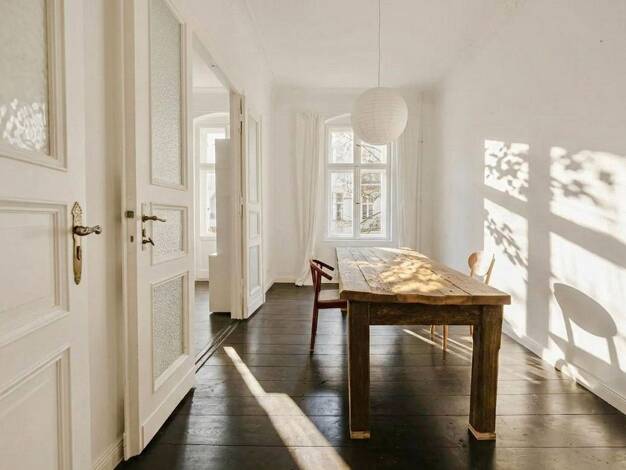 Charakteristischer Holzfußboden sorgt für ein warmes und gemütliches Ambiente und verleiht dieser 4-Zimmer-Wohnung mit klassischen Kassettentüren, originalen Beschlägen und einer großzügigen Deckenhö...