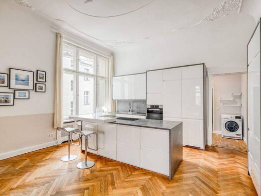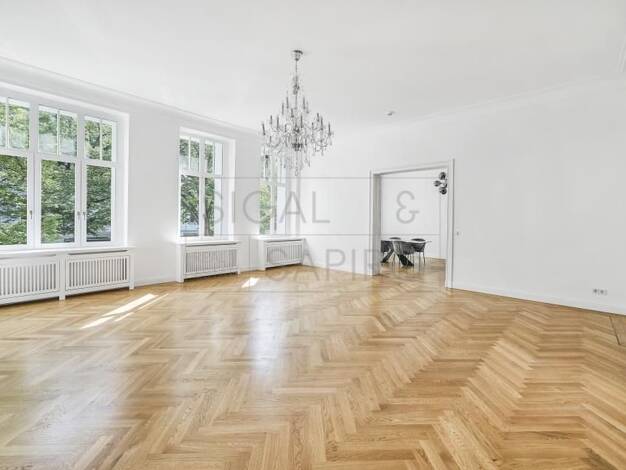 Diese 2019 sanierte Wohnung präsentiert sich mit einem einzigartigen Charme, ausgehend von der architektonischen Großzügigkeit unter ca. 3,40 Meter hohen Stuckdecken, feinen Altbaudetails, kreativen ...