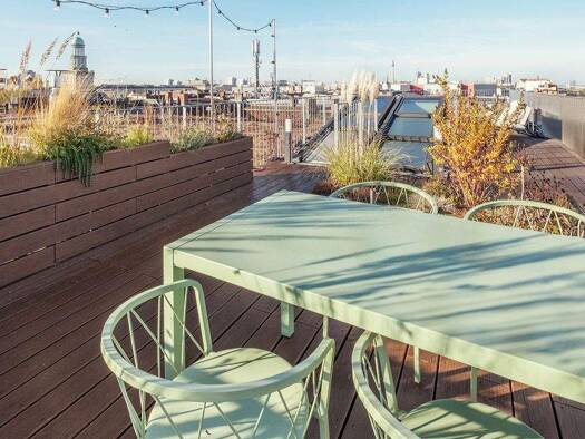 Diese traumhafte lichtdurchflutete Dachgeschosswohnung liegt mitten in Friedrichshain, dem künstlerischen und kosmopolitischen Zentrums Berlin. 2 Terrassen, eine Massivholzwendeltreppe, ein großzügig...