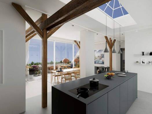 Diese traumhafte lichtdurchflutete Dachgeschosswohnung liegt mitten in Neukölln, dem künstlerischen und kosmopolitischen Zentrums Berlin gelegen. Eine maßgefertigte Einbauküche, großzügige Bäder und ...
