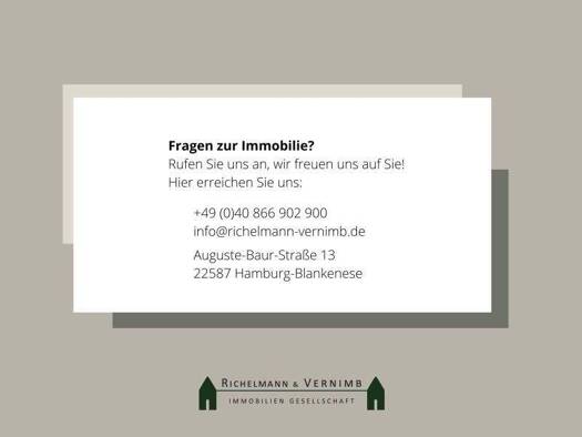 Die Stadtvilla befindet sich auf einem großzügigen, insgesamt ca. 900 m² großen Grundstück in der Blankeneser Stauffenbergstraße. Diese weist nur Anliegerverkehr auf und ist direkt von der Elbchausse...
