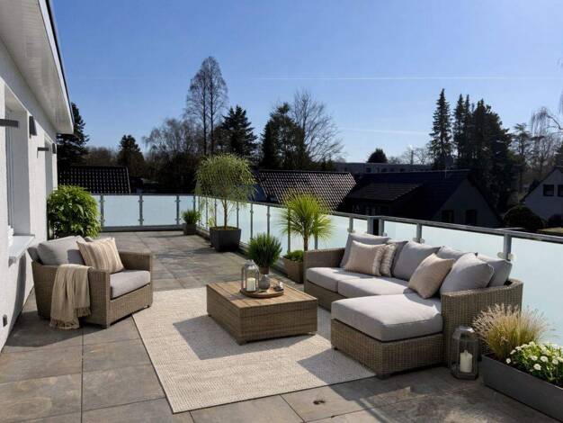 Diese gepflegte 4-Zimmer-Wohnung vereint zentrale Lage in Reinbek mit angenehmer Ruhe in zweiter Reihe. Highlight ist die ca. 30 m² große, teilweise überdachte Doppelterrasse mit kaum einsehbarem Gar...
