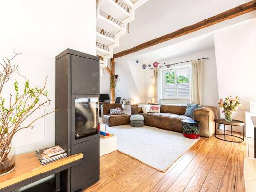 Altbaucharme trifft modernen Wohnkomfort - stilvolle Maisonette mit Gartenparadies Und ja, die Balken sind echt. Und sichtbar. Und schön. Willkommen in einem Zuhause voller Geschichte und Charakter: ...