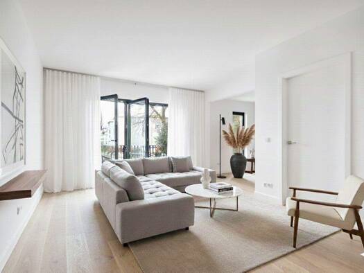 Die angebotene ca. 142 m² groß Wohnung befindet sich im Erdgeschoss einer puristischen Villa aus dem Baujahr 2015. Das Gebäude besticht durch eine hochwertige Natursteinfassade, eine puristische Bauk...