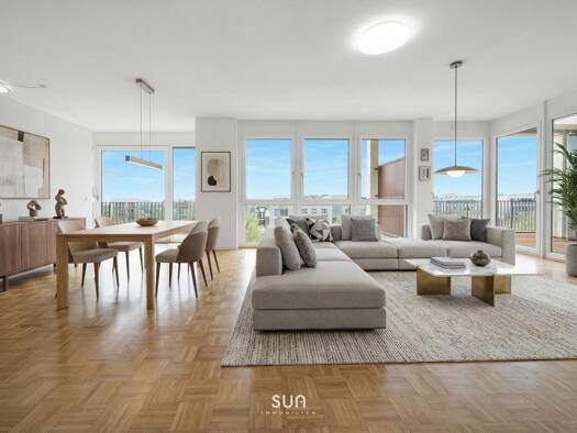Dieses exklusive Penthouse überzeugt durch seine beeindruckende Großzügigkeit und luxuriöse Ausstattung. Der lichtdurchflutete Wohn- und Essbereich mit über 50 m² bietet ein stilvolles Ambiente für e...