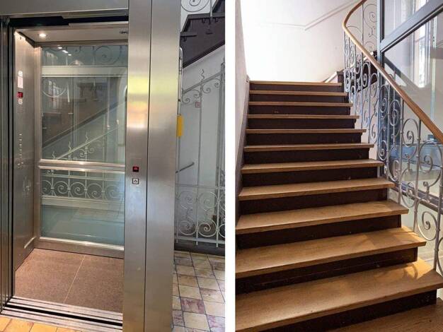 Die Beletage des Gebäudes hebt sich von den anderen Geschossen durch ihre großzügige Deckenhöhe ab, was eine exklusive und eindrucksvolle Atmosphäre schafft. Diese Etage kann in zwei Wohnungen aufget...