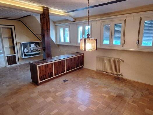 Diese Maisonettewohnung in Wellesweiler bietet auf ca. 102 qm Wohnfläche ein Zuhause mit Potenzial zur individuellen Gestaltung. Das Gebäude stammt aus den 1940er Jahren und versprüht historischen Ch...