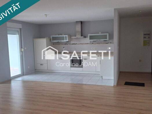 Die Wonung liegt im 3. Stock eines Luxusgebäudes im Stadtzentrum, in der Nähe des Bahnhofs Sarreguemines. Wohnung mit einer Fläche von 76,35 m² und einer hübschen Terrasse von 12,40 m². Es besteht au...