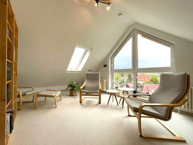 Diese charmante Maisonette-Wohnung befindet sich im Dachgeschoss eines gepflegten Mehrfamilienhaus aus dem Jahr 1996. Die Wohnung verfügt über einen kleinen Dielenbereich, von dem aus Sie in den hell...