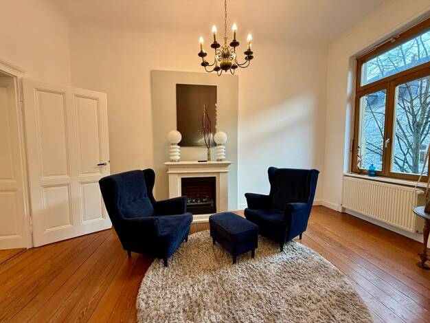 In einer stilvollen Villa aus der Zeit um 1900 bietet sich die seltene Gelegenheit, eine gesamte Wohnetage mit rund 120 m² Wohnfläche zu erwerben. Die Wohnung verbindet den Charme klassischer Altbaua...