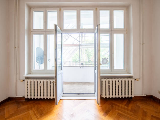 Wohnkomfort: . Drei geräumige, zur Straße ausgerichteten Zimmer sind dank der imposanten Kassettenflügeltüren miteinander verbunden und schaffen eine beeindruckende Zimmerflucht . Das sogenannte Berl...