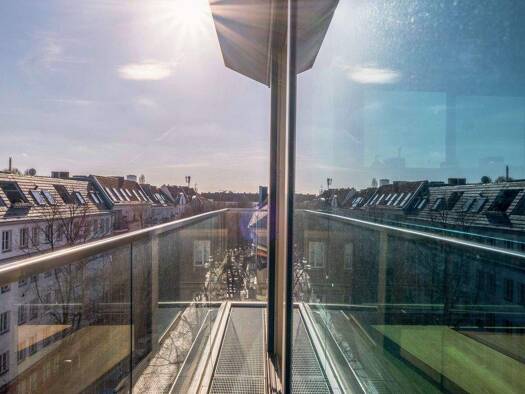 Das Penthouse in der 5. Etage liegt hoch über den Dächern von Berlin-Friedrichshain und bietet seinen Bewohnerinnen und Bewohnern zu jeder Tages- und Nachtzeit einen atemberaubenden Blick über Berlin...