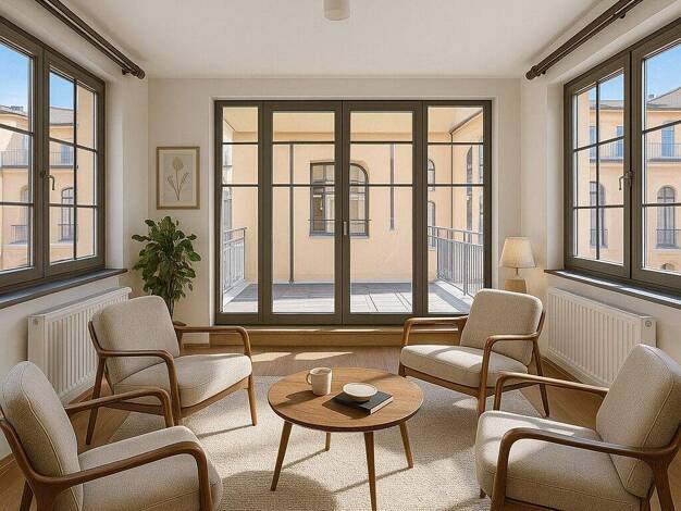 Diese Wohnung bietet eine faszinierende Großzügigkeit. Alle Zimmer erhalten stimmungsvolles Tageslicht durch große, nahezu raumbreite Verglasungen. Jedes der fünf Zimmer besitzt einen Zugang zu einer...