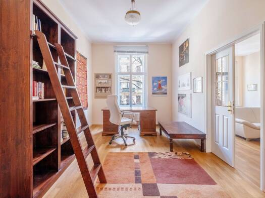 Die Wohnung befindet sich im 3. Obergeschoss eines charmanten Altbaus direkt am Zionskirchplatz. Mit einer Wohnfläche von rund 150 m², die sich auf fünf Zimmer verteilen, sowie einem funktionalen Gru...