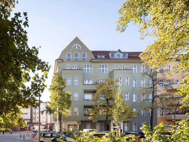 Das Gebäude befindet sich in gefragter Lage von Berlin Wilmersdorf, im Güntzelkiez. Die Vorderfassade wurde 2025 saniert und das Dach neu gemacht.