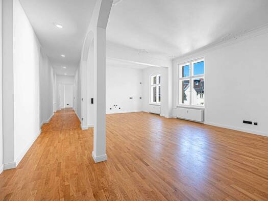 Diese besondere Eigentumswohnung im 1. OG eines Altbaus von 1907 bietet auf großzügigen 155,88 m² ein wunderschönes Wohnambiente. Mit insgesamt 5 Zimmern, inklusive drei potenziellen Schlafzimmern, p...