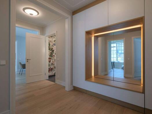 Zugang zu der wunderschönen und exklusiven Neubau-Wohnung mit modernen Stuckelementen bekommt man über das Vorderhaus der Bilker Straße und durch den ruhigen Hinterhof. Die Gebäude sind mit stilvolle...