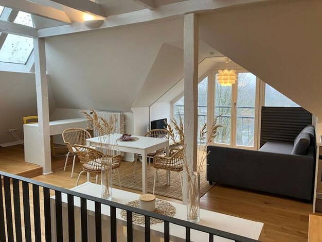 Diese außergewöhnliche Maisonettewohnung im 4. und 5. Obergeschoss (oberste Stockwerke) eines gepflegten Mehrparteienhauses aus dem Jahr 2000 mit einer harmonischen Eigentümergemeinschaft und liebevo...