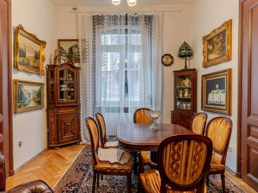 Ausstattungsmerkmale: * Wohnfläche: ca. 146 m² auf 5 Zimmer verteilt * Baujahr: 1900 * Besonderheiten: Hohe Decken mit Stuckverzierungen, Parkettböden, Kassettentüren * Küche: Große Essküche mit Spei...