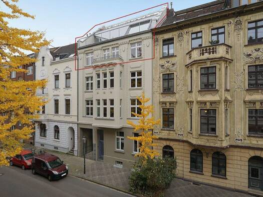 Mitten im gewachsenen Wohngebiet Pempelfort entsteht durch Aufstockung eines sanierten Stilaltbaus diese wunderschöne 5-Zimmer Penthousemaisonettewohnung. Hightlights: - Spektakulärer 53m2 großer Woh...