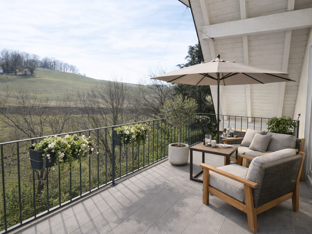 Die großzügige Wohnung liegt im Obergeschoss eines sehr gepflegten Zweifamilienhauses. Sie bietet mit ca. 140 m² viel Platz. Vom großen Balkon hat man teilweise einen schönen Blick bis ins Tal.