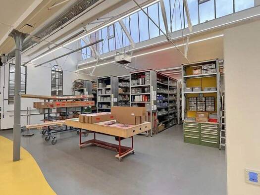 Die modern und hochwertig ausgestattete Einheit mit einer Gesamtfläche von 625 m² wurde 2019 nach den Wünschen des Mieters neu geschaffen und wird bislang als Manufaktur genutzt, die in drei Nutzungs...