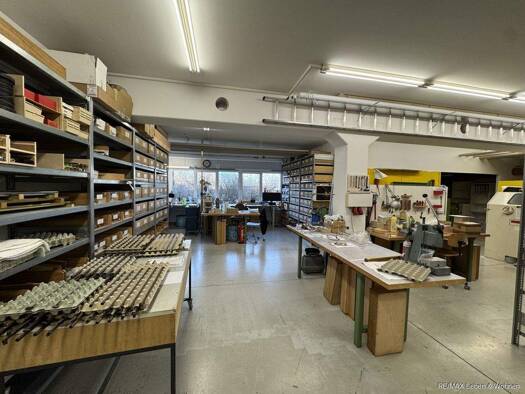 Gesamtfläche: ca. 761 m² Produktions- und Lagerflächen EG: ca. 340 m² Büro- und Sozialflächen EG: ca. 74 m² Lagerflächen OG inkl. Büro (Bodenlast: 750 kg/m²): ca. 77 m² Lagerflächen OG (Bodenlast: 45...