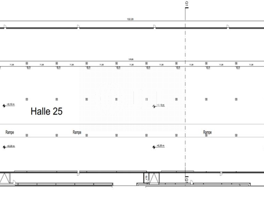 Stahlbetonskelettbauweise (Achsmaß 12 m * 24 m) mit gedämmter Profilblechfassade und Flachdach. Zusätzliche Belichtung durch Lichtbänder im Fassadenbereich. Der Logistikkomplex unterteilt sich in 4 H...