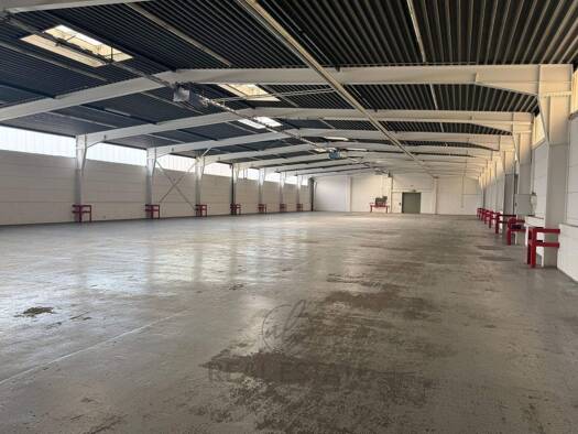 Flächenaufstellung: ca. 5.650 m² Hallenfläche ca. 600 m² Bürofläche (optional, teilbar ab ca. 120 m²) Ausstattung: - ebenerdige Andienung - unbeheizt - mit LKW befahrbare Halle - 3 große Rolltore - H...