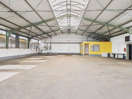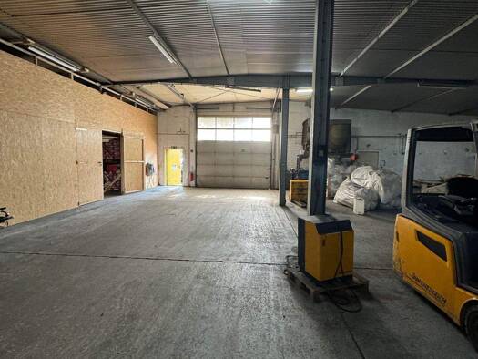 Dieses Objekt umfasst insgesamt ca. 590 m2 Hallen-, Büro- und Sozialflächen. Eckdaten Halle/Ausstellung: ca. 590 m2 isolierte und beheizte Hallen- / Lager- / Ausstellungsfläche 1 elektrisches Rolltor...
