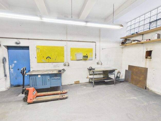 Die Produktions- und Lagerfläche beträgt insgesamt zirka 436 Quadratmeter verteilt auf zwei Etagen. Im Erdgeschoss befinden sich zusätzlich Sozialräume, Toilette, Ölheizung und Aktenraum. Im ersten O...