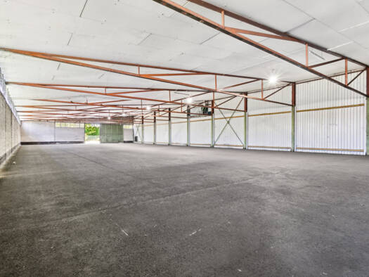 Die angebotene Scheune ist unterteilt in 2 Räume. Es gibt einen Raum mit einer freitragenden Decke und einem großen Schiebetor und einen weiteren Raum im hinteren Bereich mit niedriger Decke und Stüt...