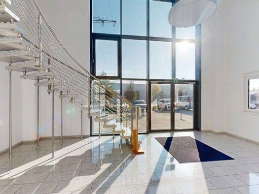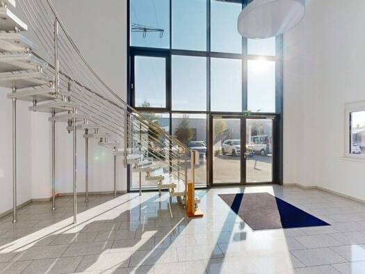 Das Gewerbeanwesen verfügt über eine Produktionshalle, Büros und Garagen mit einer Gesamtfläche von 6.622 m² Fläche. Eine Teilanmietung ist ab 2.525 m² möglich. Zur Ausstattung gehört eine Krananlage...