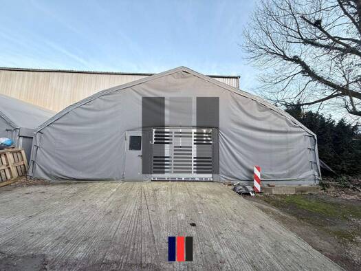 Diese Kaltzeltlagerhalle mit 120 m² Hallenfläche bietet eine flexible Lösung für Lager- und Logistikzwecke. Ein ebenerdiges Rolltor ermöglicht eine komfortable Andienung, die Hallenhöhe von 2,50 m bi...