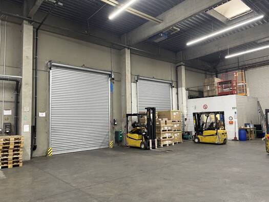 Die hier beschriebene Einheit verfügt über 2.150 m² Halle und 550 m² Büro, das direkt an die Halle angeschlossen ist. Weitere Büroflächen können im angrenzenden Gebäude gemietet werden.