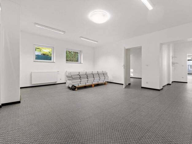 Die 2021 umfassend sanierte Liegenschaft gliedert sich in 2 zusammenhängende Halleneinheiten, mit einer Gesamtfläche von ca. 5.500 m², sowie ein vorgelagertes Bürogebäude mit ca. 750 m². Die einzelne...