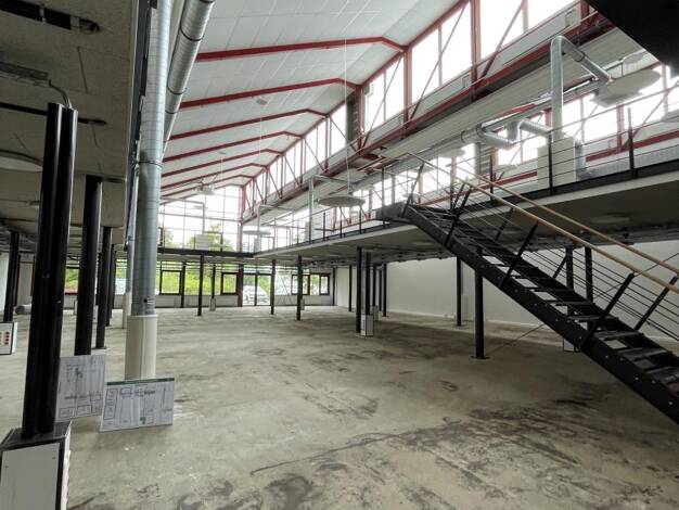 Die angebotene Gewerbefläche befindet sich im Erdgeschoss eines modernen Bürogebäudes mit nur wenigen Einheiten. Insgesamt umfasst die Halle / Produktionsstätte mit einem Einzelbüro im Obergeschoss 3...