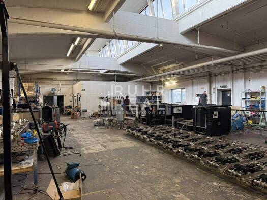 Diese Kombination aus Halle / Lager / Büro besteht aus einer überdachten Freifläche mit 3 LKW Rampen, einer 6,55 Meter hohen Hallenfläche (964 m²), einer 3,20-3,35 Meter hohen Lagerfläche (1.859 m²) ...