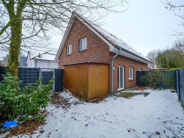 Das in Godensholt, einem ruhigen Ortsteil der Gemeinde Apen in Niedersachsen, gelegene Einfamilienhaus überzeugt durch seine solide Massivbauweise und die zeitlose Architektur mit klassischem Satteld...