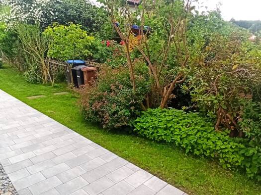 Einfamilienhaus, ruhige Lage; Rasenfläche 300qm mit Rasenroboter, komplett Einbauküche, neuwertige Elektrogeräte (ohne Kühlschrank), alle Räume neu renoviert; Vinyl-Fußboden in den Zimmern, Außenwänd...