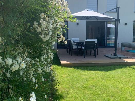 2015 erbaute-, möblierte-, moderne Stadtvilla mit großem Pool, Garage, teilweise überdachter Terrasse in ruhiger Lage, Suprfit-Fitnessstation, Photovoltaik mit Teslaspeicher und Ladestation 11KW in B...