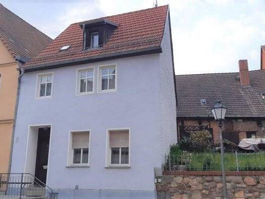 Zur Vermietung steht ein teilunterkellertes, um 1900 erbautes (genaues Baujahr ist unbekannt) Stadthaus. Dieses unterteilt sich im Erdgeschoss in Wohnzimmer, Küche, Flur, WC und Anbau. Im Obergeschos...