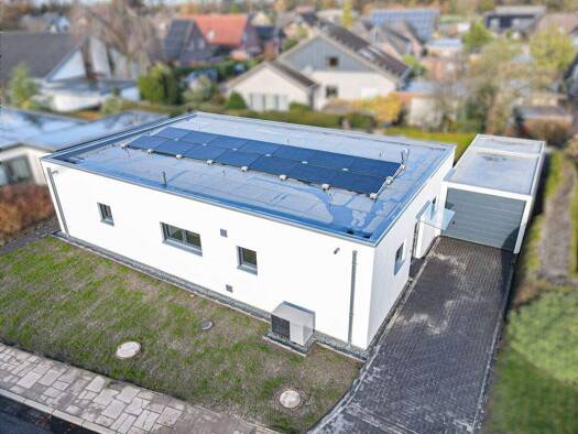 Dieser freistehende Flachdachbungalow im Herzen von Ganderkesee bietet Ihnen moderste Details wie eine Luftwärmepumpe, eine Lüftungsanlage, eine Fußbodenheizung, eine offene Küche mit Kochinsel oder ...