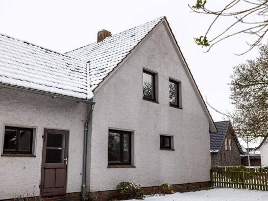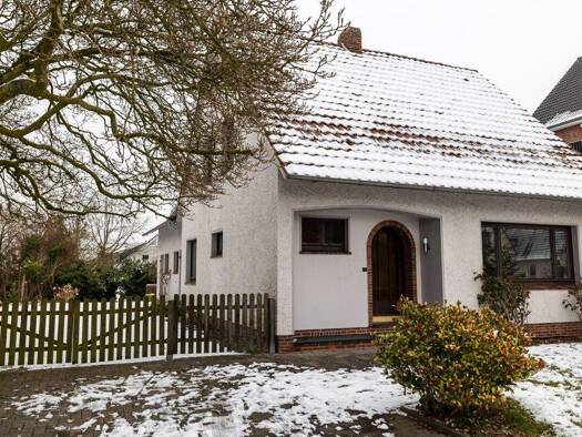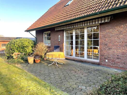 Das in Godensholt, einem ruhigen Ortsteil der Gemeinde Apen in Niedersachsen, gelegene Einfamilienhaus überzeugt durch seine solide Massivbauweise und die zeitlose Architektur mit klassischem Satteld...