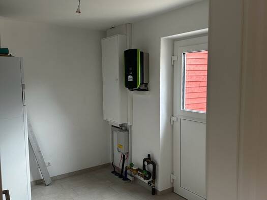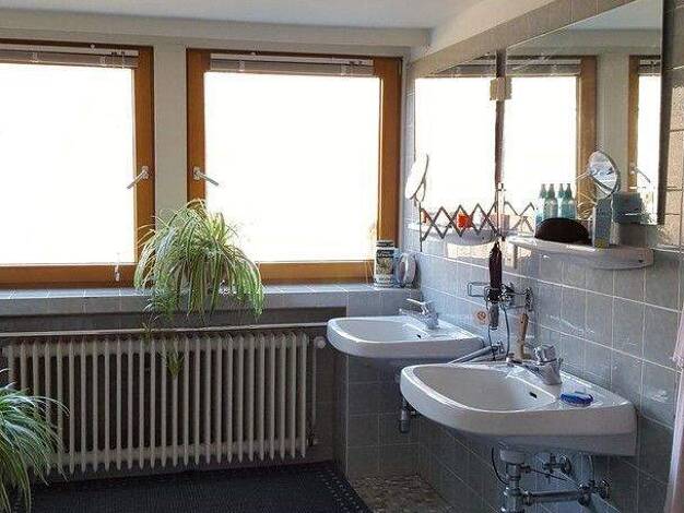 Das Haus befindet sich in leichter Hanglage. Alle Zimmer sind sehr hell, im Erdgeschoß reichen die doppelflügeligen Glastüren bis zum Fußboden. Im Erdgeschoß befindet sich ein großes Wohnzimmer (ca. ...