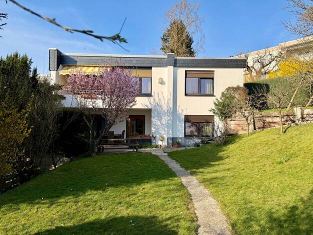 Mit Blick ins Grüne befindet sich dieses architektonisch wohldurchdachte 1-Familienhaus, direkt am Bachlauf gelegen auf einem wunderschönen Grundstück. Im Erdgeschoss erwartet Sie neben dem Windfang,...