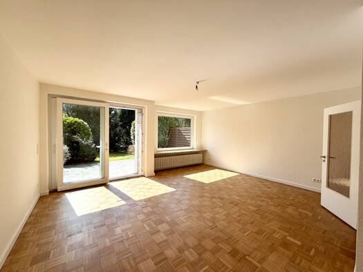 Der modernisierte Bungalow ist rückwärtig auf einem gesamten Grundstück von 1.383 m² gelegen, davon ist ein Teil Auffahrt und etwa ca. 1.120 m² Garten. Dieser ist wunderbar grün eingefasst und somit ...