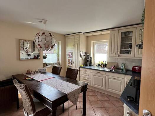 Dieses charmante Haus bietet auf großzügigen 157,54 Quadratmetern genügend Platz für die ganze Familie. Mit insgesamt 5 Zimmern, 2 Bädern, Fußbodenheizung, Kaminofen und einer einladenden Terrasse kö...