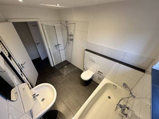 Biete Zweifamilienhaushälfte im Obergeschoss an. Das Haus wurde neu saniert und renoviert. Wohneinheit im Obergeschoss mit ausgebautem Dachboden 90m² 3 Zimmer, davon 2 Schlafzimmer eigener Eingang un...