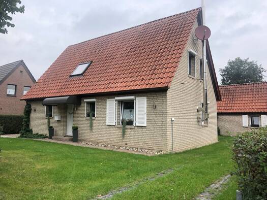 Dieses freistehende Einfamilienhaus empfängt Sie auf der Südostseite mit einem erhöhten Eingangsbereich und wenigen Stufen. Hinter der Haustür öffnet sich ein zentraler Flur, von dem sämtliche Räume,...